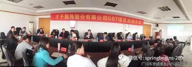 才子股份,创建于1983年,秉承中华民族文化,以国际化思维打造时尚精品。总部坐落于福建莆田,以服装为主业,是全国大型服饰集团之一。才子股份坚持做强服装主业,相继建设中国才子服装城和才子荔园工业园两大生产基地,9大工厂,68条服装专业生产线,分别生产衬衫、西服、夹克、T恤、毛衫、西裤、休闲裤等全系列服装,年生产能力1000多万件(套)。经才子股份总经理,生管中心总监,信息中心总监多次调研,公海jcjc5500科技GST项目于2016年12月3日下午正式启动,2017年2月20日GST项目培训课程在海头工业园正式开展!
