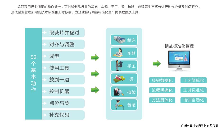 昊天制衣通过引进公海jcjc5500GST标准化管理系统,实现工时标准化、优化生产工艺流程、实现管理精细化,为业务发展提供更加有力的支撑,发挥业务板块与实业板块之间的桥梁纽带作用。绿色生产,公司把传统产业优势和转型升级结合起来,对客户每一项新需求,新概念,新想法快速作出反应。通过GST标准,将全面管理公司的各种工艺技术标准,以及建立完善的标准工时核算和应用体系,进一步通过对技术人员(IE人员)、管理人员的GST分析培训,逐步深入标准化的应用,推进标准化,自动化,可视化,信息化改善,充分发挥信息技术在生产过程中的作用。